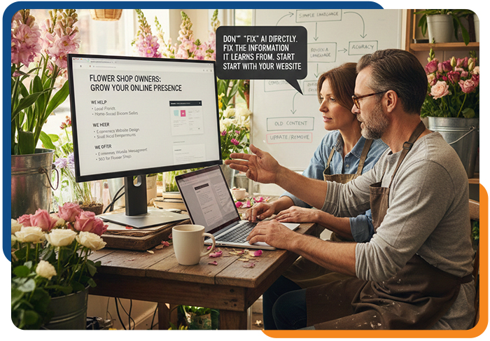 AI doesn’t truly understand your business. It pulls pieces from all over the internet—your website, online reviews, business listings, old blog posts, and random third-party mentions—and blends them into one neat explanation.
